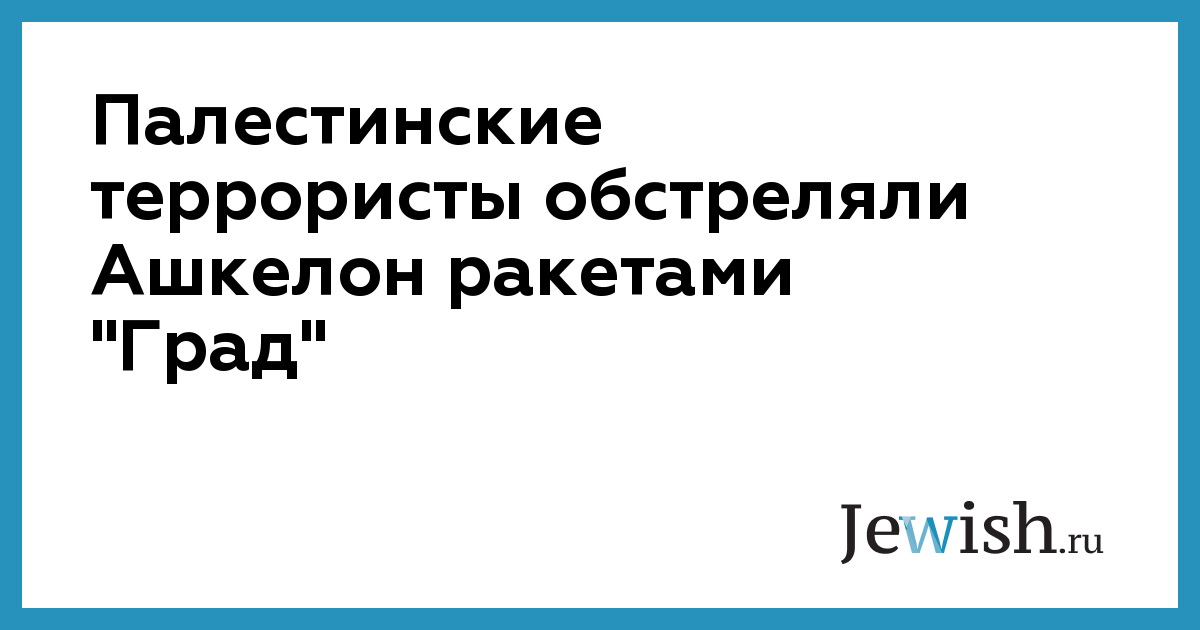 Около 7:10 утра палестинские террористы обстреляли израильский город Ашкелон ракетами "град". В городе прозвучала сирена воздушной тревоги и вскоре прогремели три взрыва.