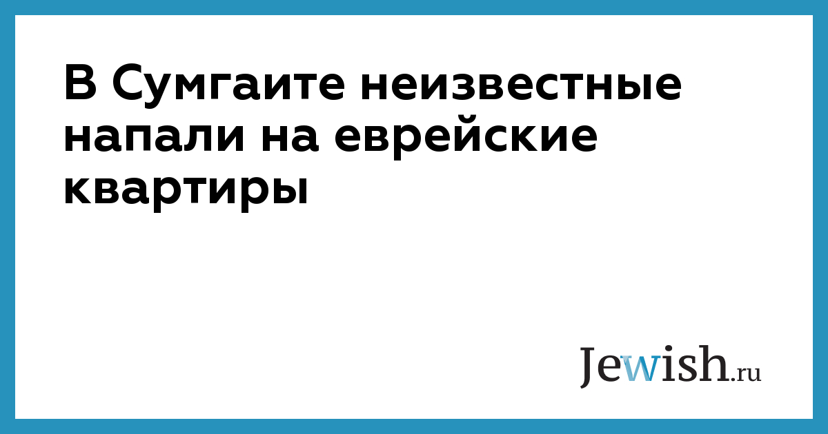Минувшей ночью в азербайджанском городе Сумгаит было совершено несколько разбойных нападений на квартиры, в которых проживают еврейские семьи. По неуточненной информации, в результате 12 человек были доставлены в больницы с травмами различной степени тяжести, в том числе и ножевыми ранениями.