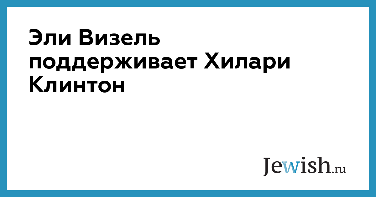 Эли Визель поддерживает Хилари Клинтон