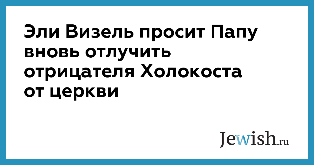 Известный еврейский писатель и общественный деятель Эли Визель просит Папу Римского вновь отлучить от церкви епископа, отрицающего Холокост. Лауреат Нобелевской премии мира призвал Бенедикта XVI применить жесткие меры по отношению к епископу Ричарду Уильямсону.