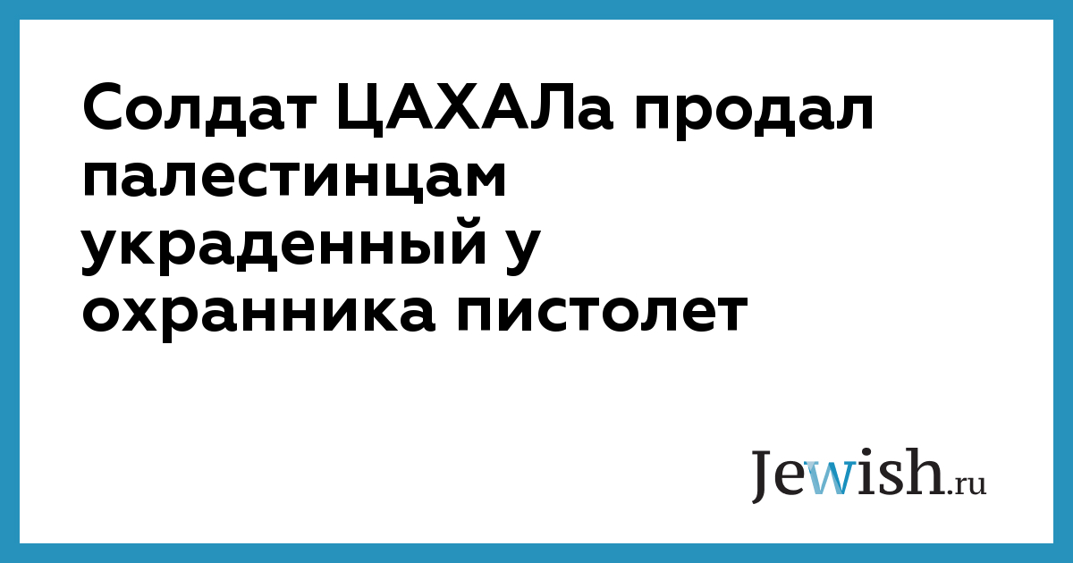 Солдат ЦАХАЛа продал палестинцам украденный у охранника пистолет