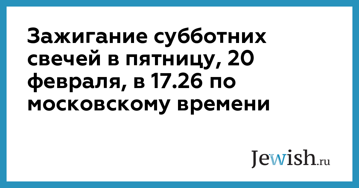 Зажигание субботних свечей в пятницу, 20 февраля, в 17.26 по московскому времени