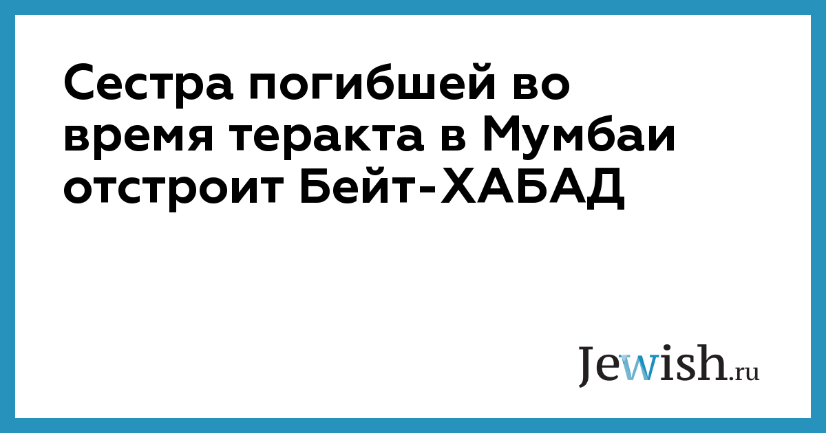 Сестра погибшей во время теракта в Мумбаи отстроит Бейт-ХАБАД
