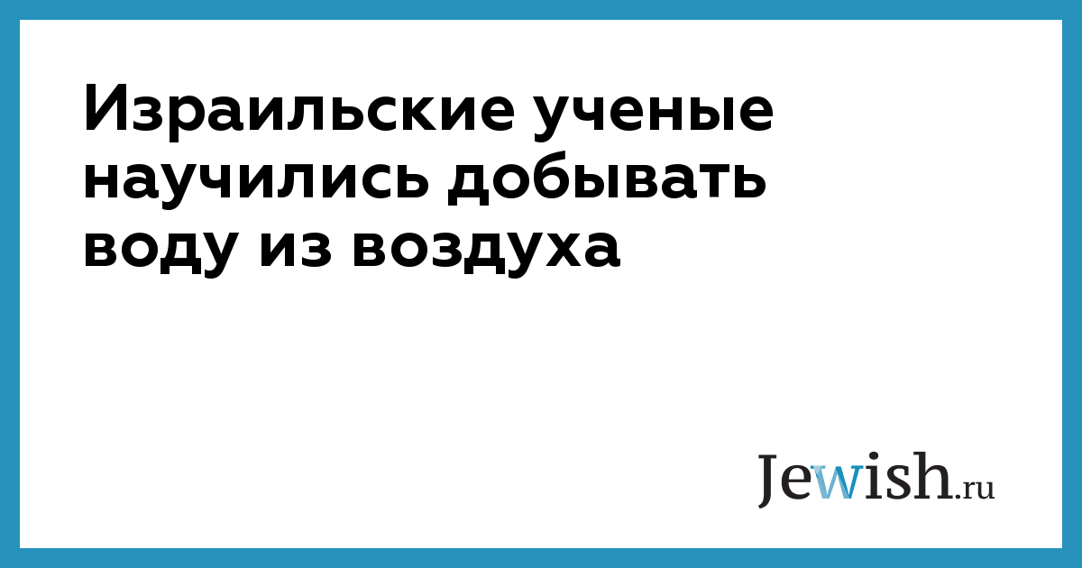 Израильские ученые научились добывать воду из воздуха