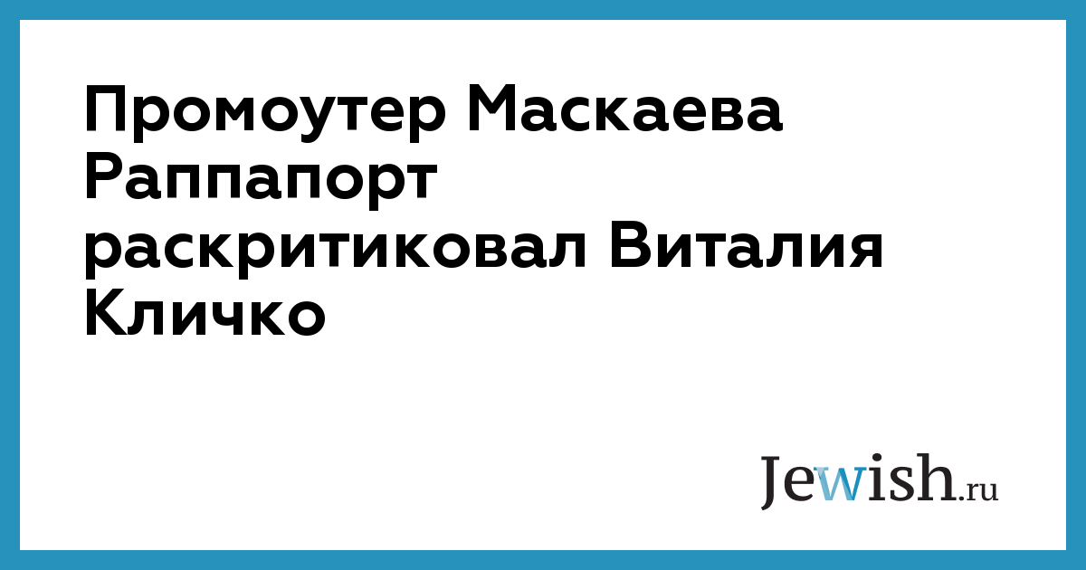 Промоутер Маскаева Раппапорт раскритиковал Виталия Кличко