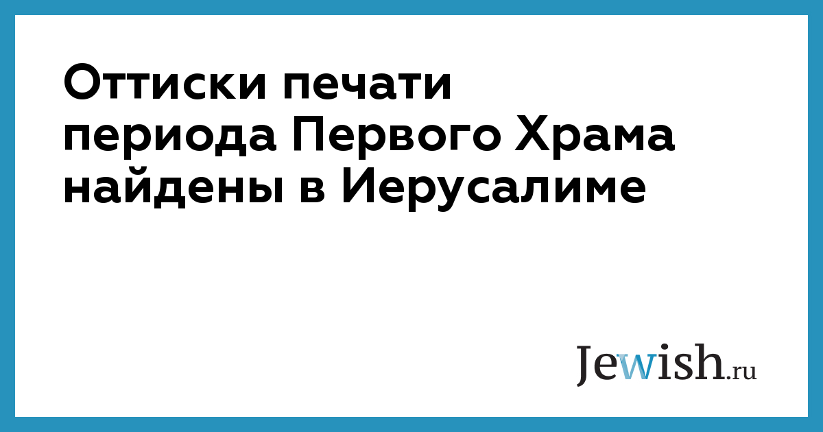 Оттиски печати периода Первого Храма найдены в Иерусалиме