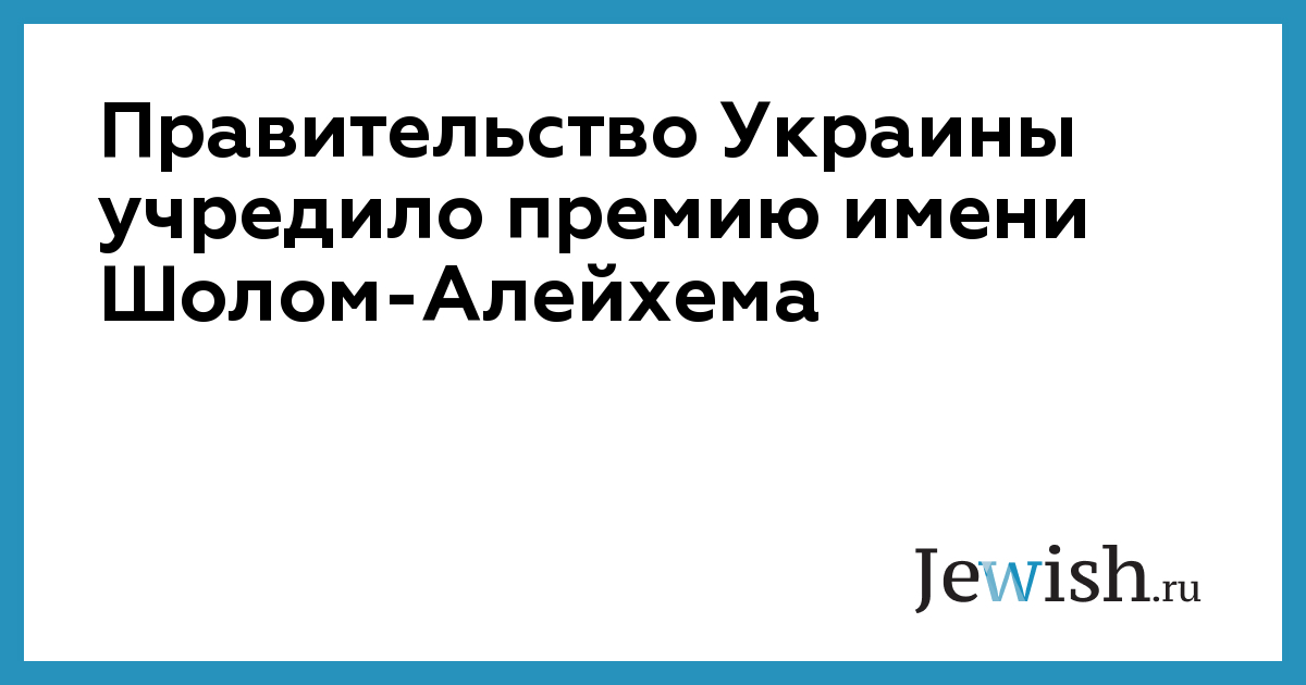 Кабинет Министров Украины учредил премию имени писателя Шолом-Алейхема, передает MIGnews.com. Об этом сказано в постановлении №147 от 25 февраля 2009 года.