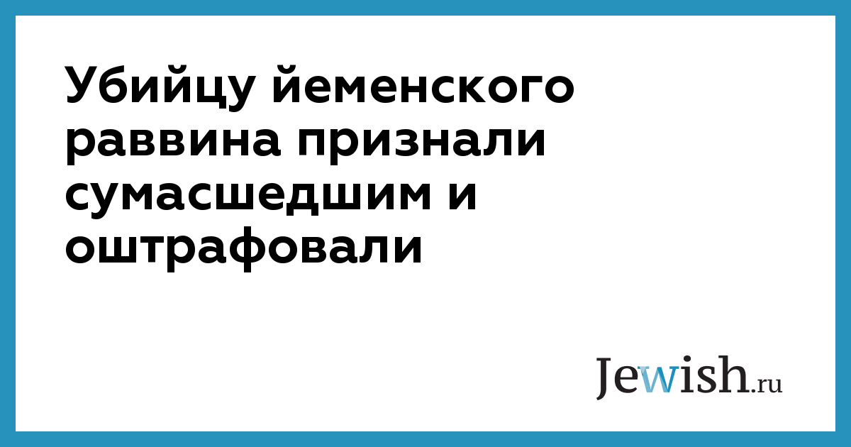 Суд приговорил убийцу раввина, бывшего офицера ВВС Йемена Абдулазиза Хамуда аль-Абди, лишь к уплате штрафа. Убийца второй раз вышел сухим из воды: два года назад он убил свою жену и также избежал кары как психически больной.