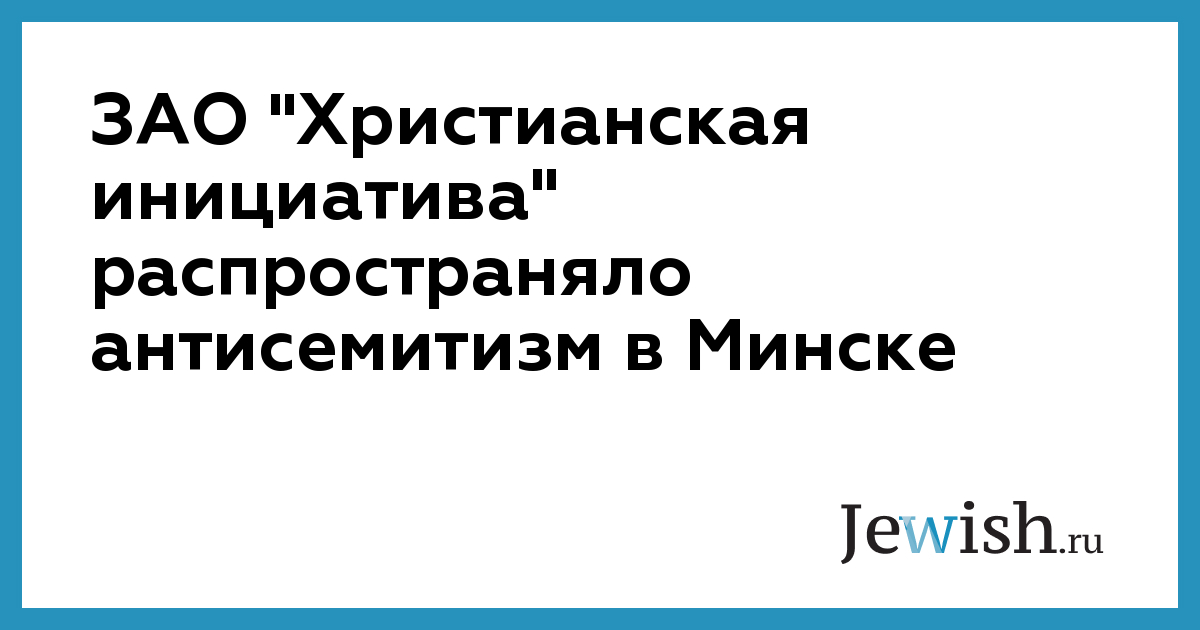ЗАО "Христианская инициатива" распространяло антисемитизм в Минске