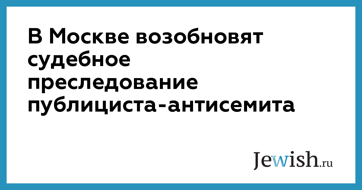 В Москве возобновят судебное преследование публициста-антисемита