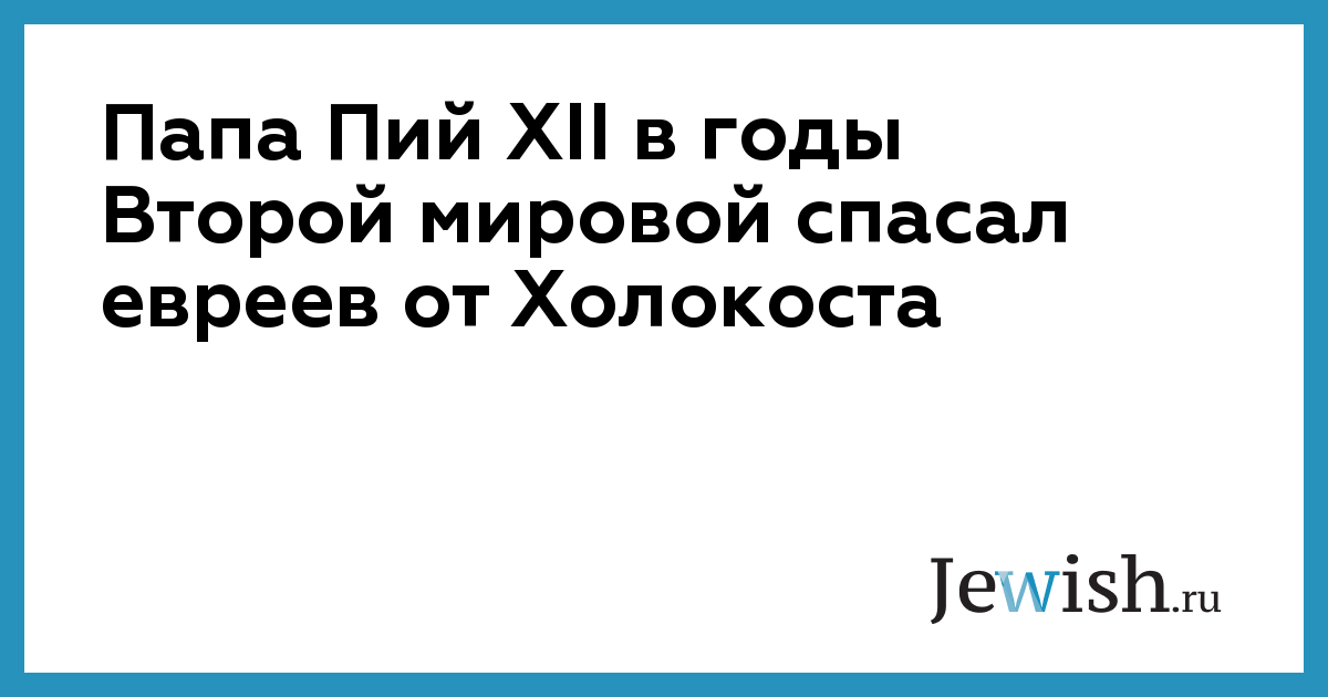 Папа Пий XII в годы Второй мировой спасал евреев от Холокоста