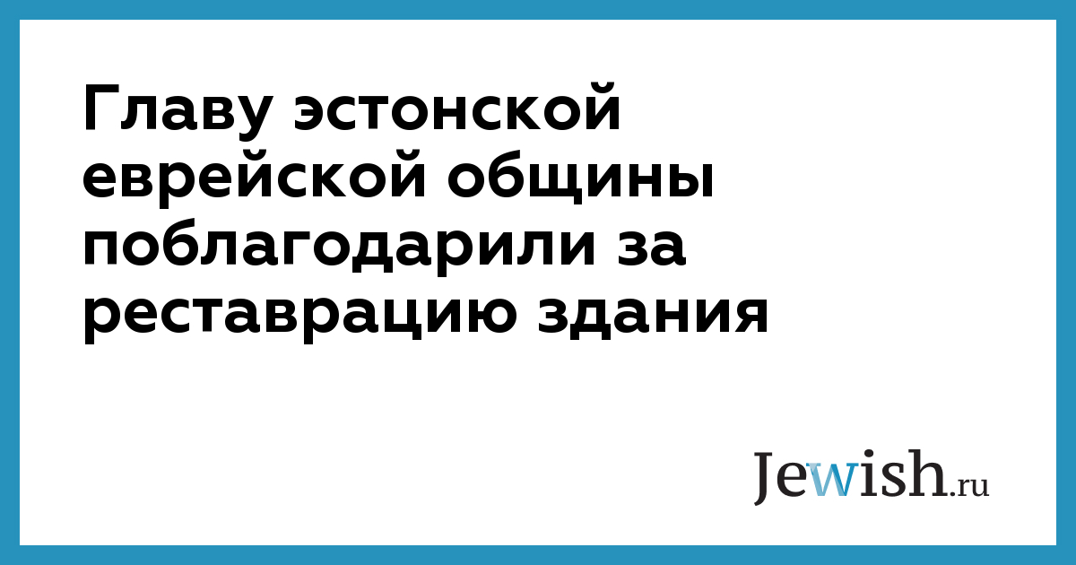 Главу эстонской еврейской общины поблагодарили за реставрацию здания