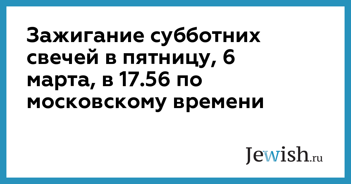 Зажигание субботних свечей в пятницу, 6 марта, в 17.56 по московскому времени