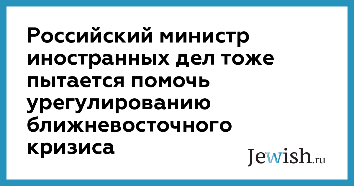 Российский министр иностранных дел тоже пытается помочь урегулированию ближневосточного кризиса