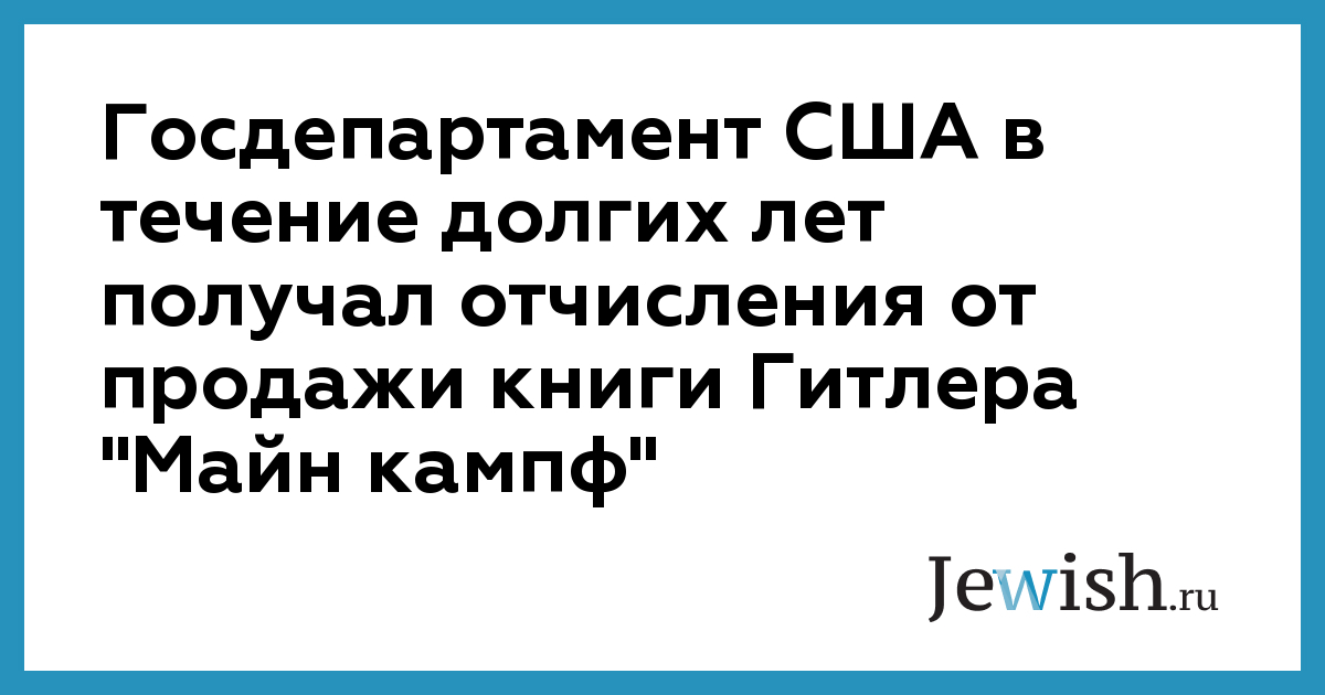 Госдепартамент США в течение долгих лет получал отчисления от продажи книги Гитлера "Майн кампф"