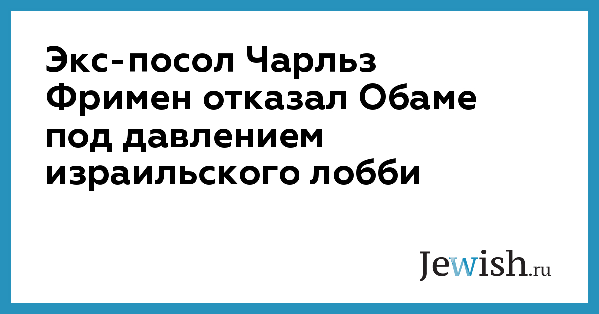 Экс-посол Чарльз Фримен отказал Обаме под давлением израильского лобби
