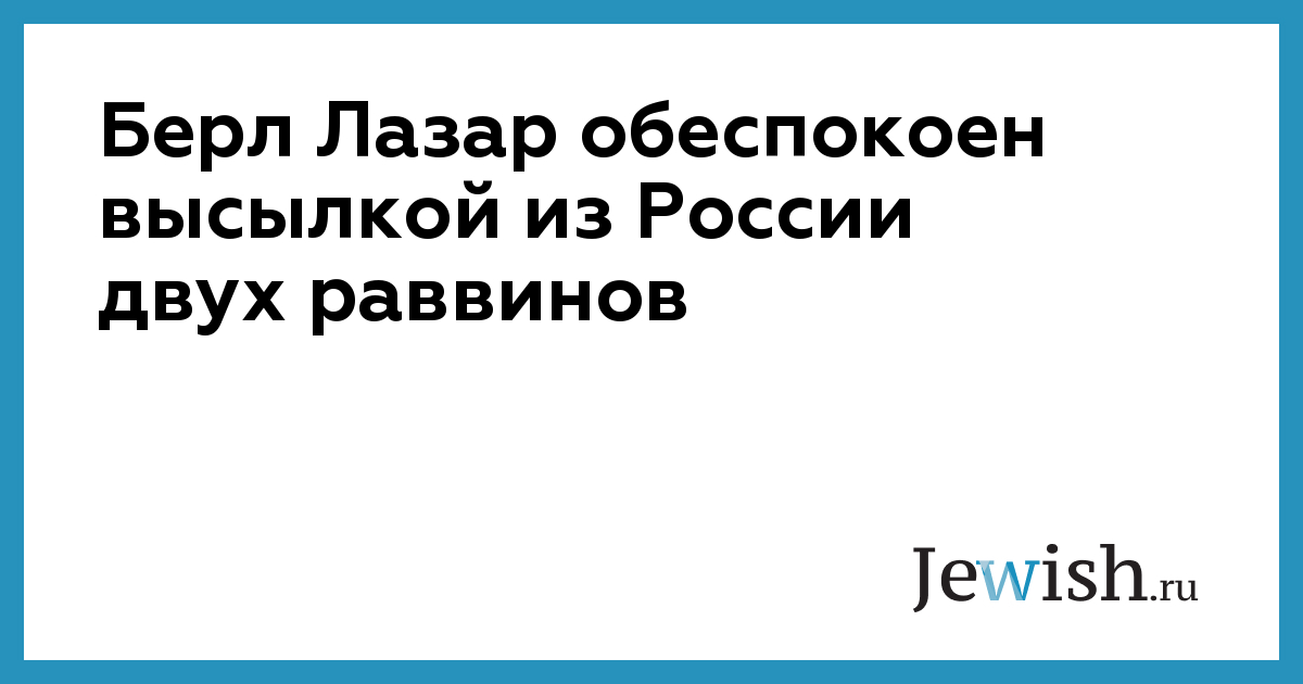 "Недавно из Приморья был выслан раввин Исроэль Зильберштейн, а из Ставрополя — раввин Цви Хершкович. Для нас это очень тяжелый сигнал, евреи впервые за многие годы начали опасаться за будущее своей общины в России", — заявил Берл Лазар, выступая накануне в Туле на совместном заседании президиума Госсовета и Совета при президенте по взаимодействию с религиозными объединениями. Главный раввин России считает, что это "очень тревожный сигнал и для других конфессий — христиан, мусульман, буддистов".