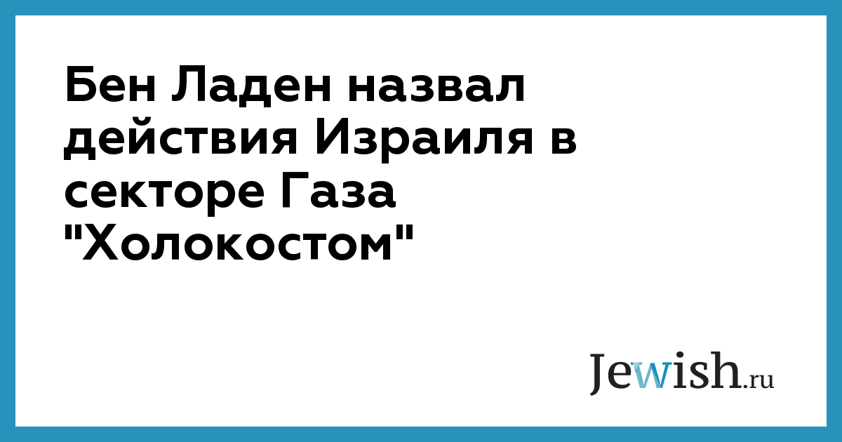 Бен Ладен весьма жестко высказался против Израиля, назвав его действия в секторе Газа "Холокостом", передает Газета.Ru со ссылкой на Reuters.
