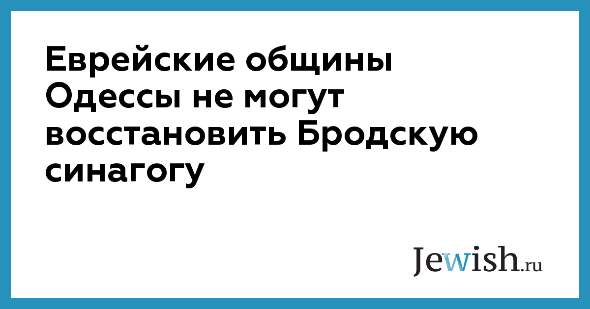 Еврейские общины Одессы не могут восстановить Бродскую синагогу