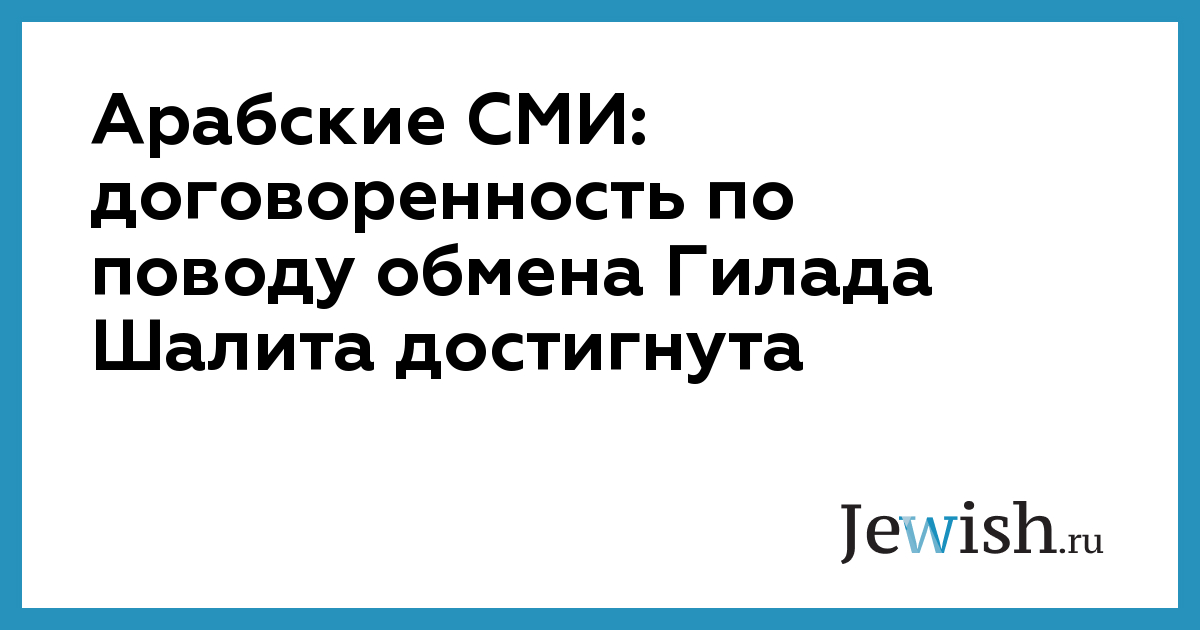 Арабские СМИ: договоренность по поводу обмена Гилада Шалита достигнута