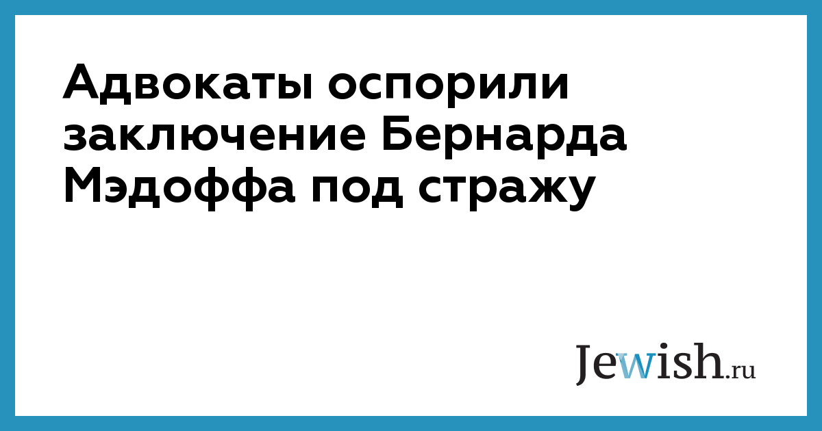 Адвокаты американского финансиста Бернарда Мэдоффа подали апелляцию на решение суда, постановившего заключить обвиняемого под стражу до окончания слушаний по его делу. Защита подсудимого уверена, что суд вынес неправильное решение, так как Мэдофф не представляет угрозы обществу и ни разу не пытался скрыться от правосудия.