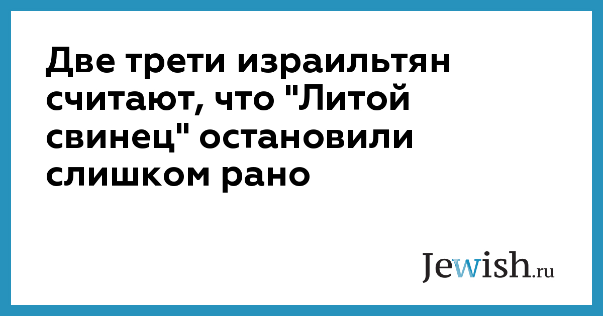 Две трети израильтян убеждены: антитеррористическая операция "Литой свинец" была прекращена слишком рано. Об этом свидетельствуют результаты опроса общественного мнения, проведенного институтом Truman-PSR.