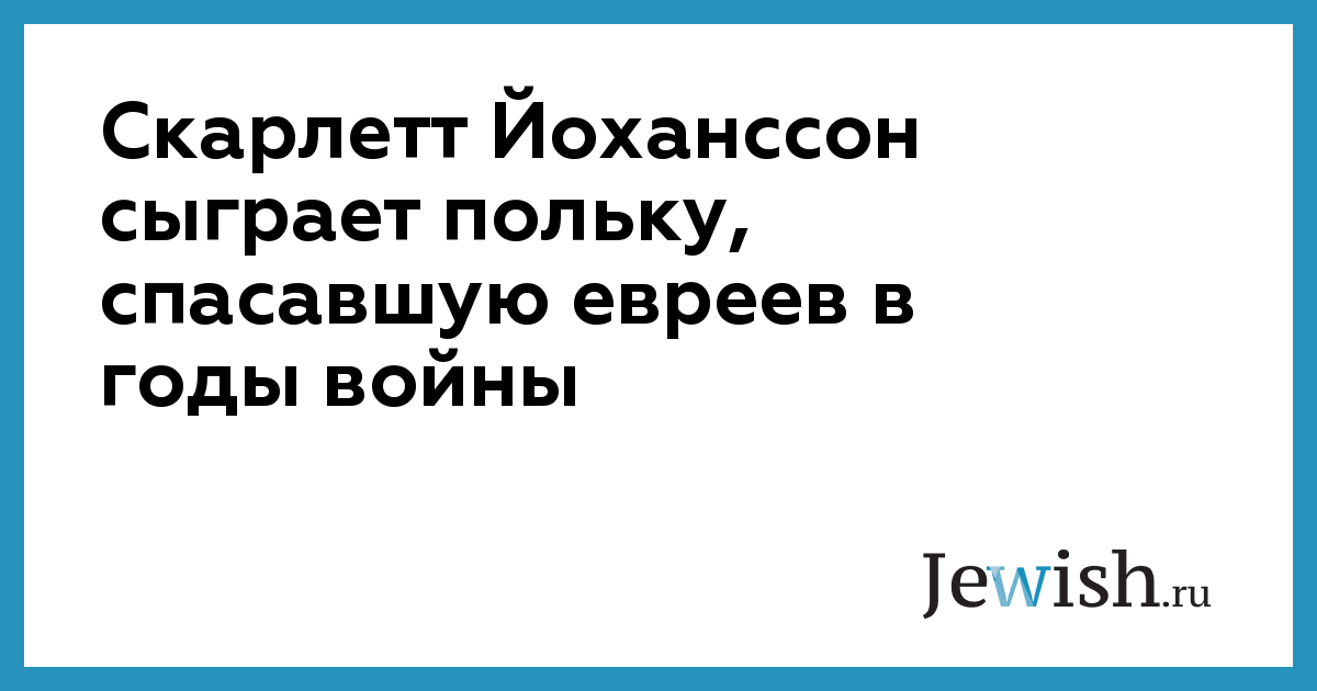 Скарлетт Йоханссон сыграет польку, спасавшую евреев в годы войны
