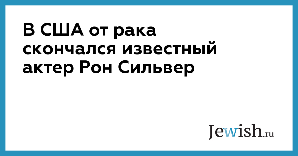 В США на 63-м году жизни скончался известный актер Рон Сильвер. Как сообщает Lenta.ru со ссылкой на телеканал Fox, причиной смерти стал рак, с которым Сильвер боролся последние два года.