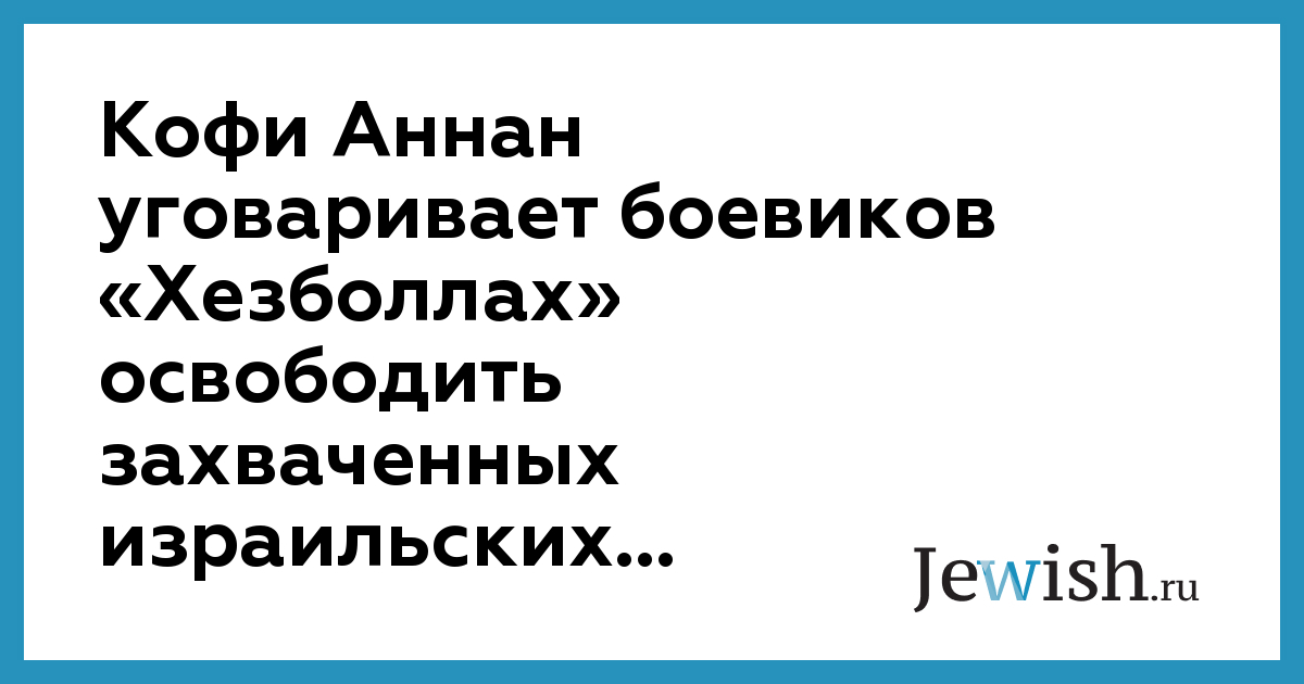 Арабская террористическая религиозная организация "Хезболлах" заявила, что единственным условием освобождения троих израильских солдат, захваченных боевиками "Хезболлах", является их обмен на палестинских узников израильских тюрем. Никакие другие варианты экстремисты рассматривать не намерены. Более того, не намерены они и оглашать полный список своих требований, утверждая, что это может сорвать переговоры, на которые, уверены в "Хезболлах", Израиль непременно согласится. Боевики также заявляют о том, что посредник в переговорах должен быть "приемлемым". Второй человек в Хезболлах, шейх Наим Касем, подтвердил, что организация "не возражает" против посредничества генсека ООН. Если, конечно, Аннану удастся добиться от Израиля приемлемых для "Хезболлах" условий. Попутно лидер экстремистов в очередной раз объявил Израиль в агрессии, правда, на этот раз против Ливана, а не против палестинцев. Добившись того, что Кофи Аннан ведет с ними переговоры об освобождении израильских солдат, международные террористы завоевали немыслимую еще несколько лет назад высоту. И договариваться теперь о выдаче заложников будут высшие чины Организации объединенных наций.