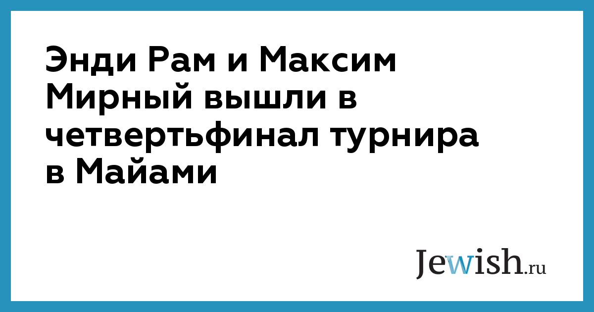 На теннисном турнире в Майами (США) с призовым фондом 4,5 млн долларов белорус Максим Мирный (42-е место в парном рейтинге) и израильянин Энди Рам (13) вышли в четвертьфинал соревнований дуэтов. Накануне во втором круге белорусско-израильская пара выиграла у посеянных под седьмым номером южноафриканцев Джеффа Кутци (14) и Уэсли Муди (15) - 7:6 (7:4), 3:6, 10:8.