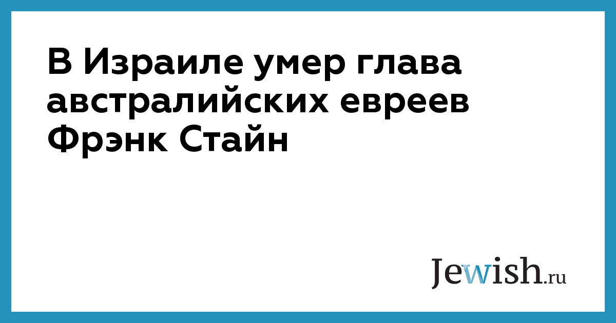 Фрэнк Стайн, прозванный "лицом австралийского еврейства в Израиле" умер в возрасте 52 лет после продолжительной болезни.