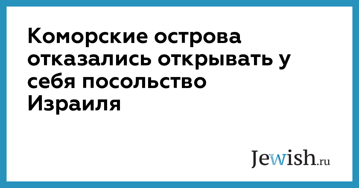 Коморские острова не дали согласие на открытие на своей территории посольства Израиля. Об этом заявил в интервью телеканалу Al Arabiya президент крошечного островного государства Ахмед Абдалла Мухаммед Самби.