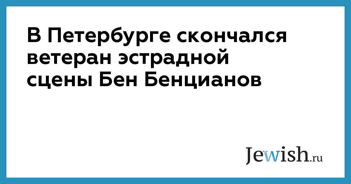 В Петербурге скончался ветеран эстрадной сцены Бен Бенцианов