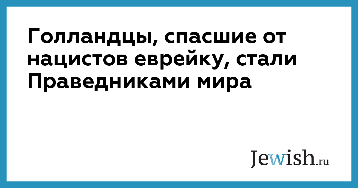 Голландцы, спасшие от нацистов еврейку, стали Праведниками мира