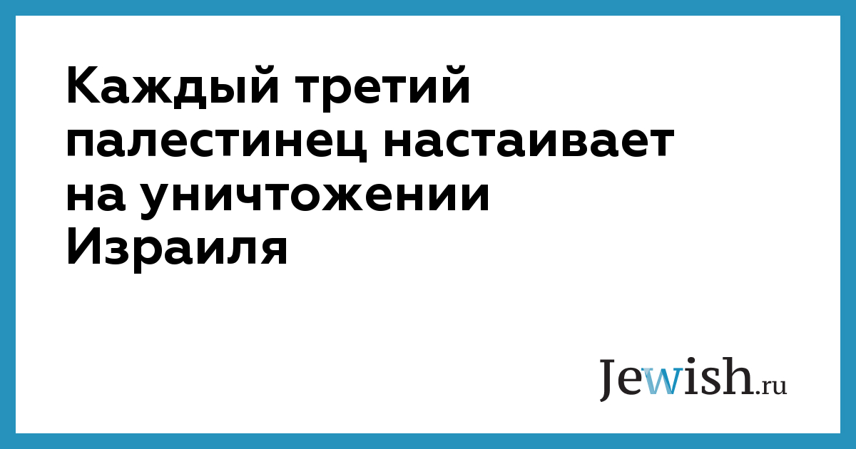 Данные опроса общественного мнения, проведенного норвежским Институтом FAFO, свидетельствуют о том, что треть населения ПА и сектора Газа продолжает настаивать на полном уничтожении Государства Израиль военными или политическими средствами.