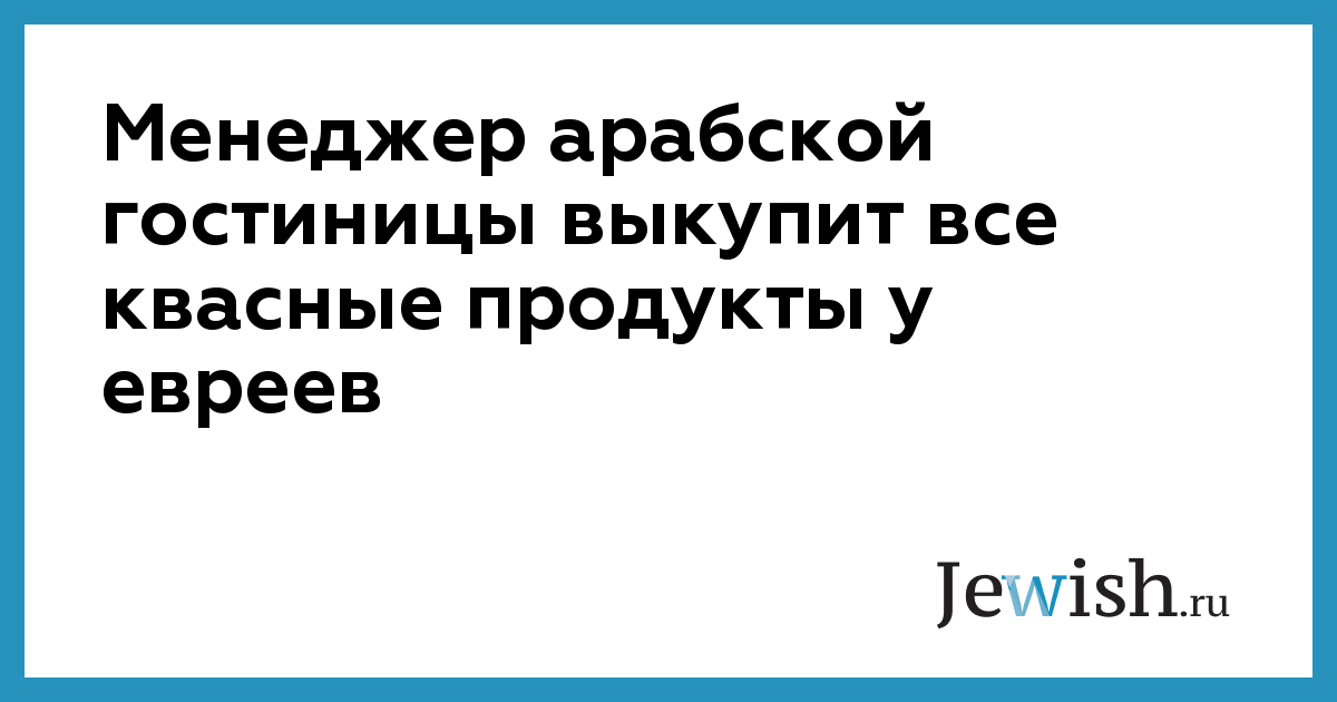 Менеджер арабской гостиницы выкупит все квасные продукты у евреев