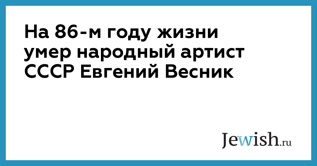 На 86-м году жизни умер народный артист СССР Евгений Весник