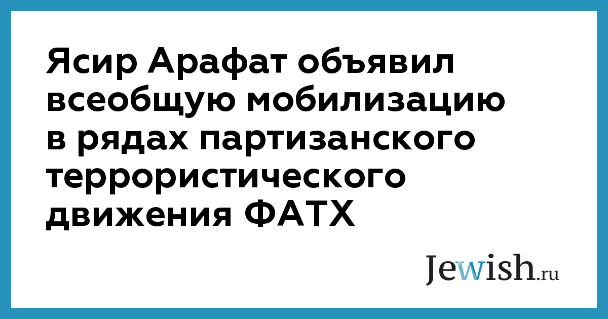 Ясир Арафат объявил всеобщую мобилизацию в рядах партизанского террористического движения ФАТХ