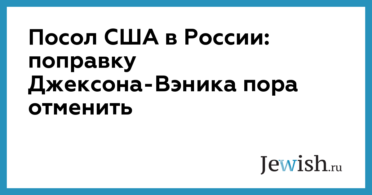 Посол США в России: поправку Джексона-Вэника пора отменить