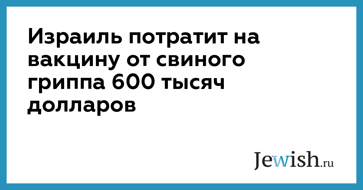 Израиль потратит на вакцину от свиного гриппа 600 тысяч долларов