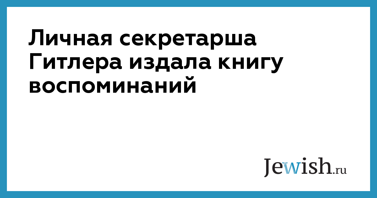 Личная секретарша Гитлера издала книгу воспоминаний