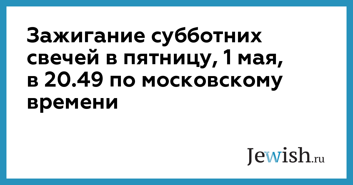 Зажигание субботних свечей в пятницу, 1 мая, в 20.49 по московскому времени