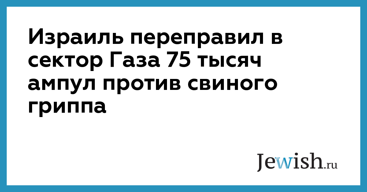 Израиль переправил в сектор Газа 75 тыс. ампул с вакцинами против свиного гриппа. Эти фармацевтические препараты предназначены для вакцинирования домашнего скота, включая млекопитающих и птиц.