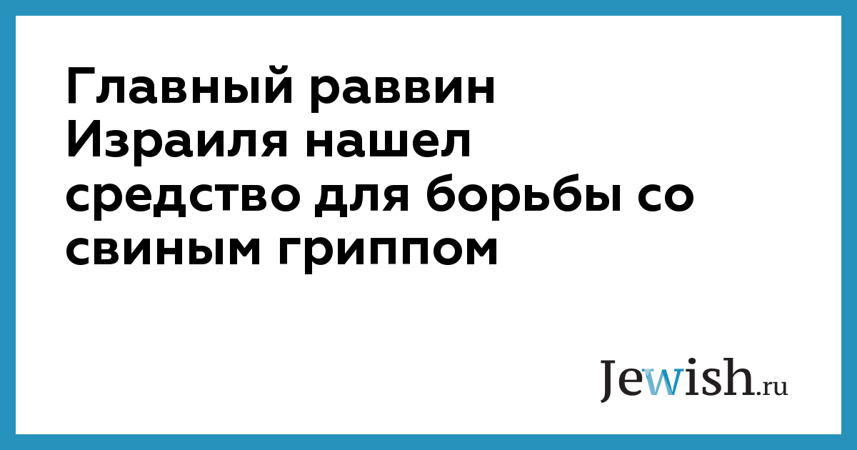Главный раввин Израиля нашел средство для борьбы со свиным гриппом