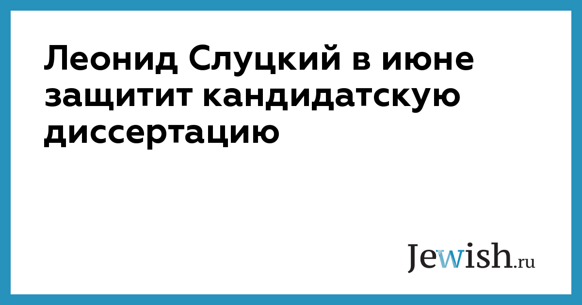 Леонид Слуцкий в июне защитит кандидатскую диссертацию