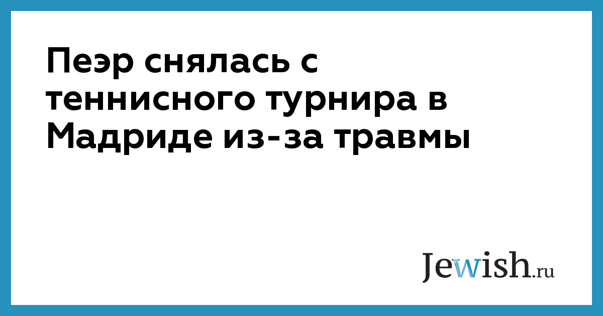 Израильская теннисистка Шахар Пеэр накануне из-за травмы прекратила выступление на турнире Mutua Madrilena Madrid Open с призовым фондом 4,5 млн долларов.