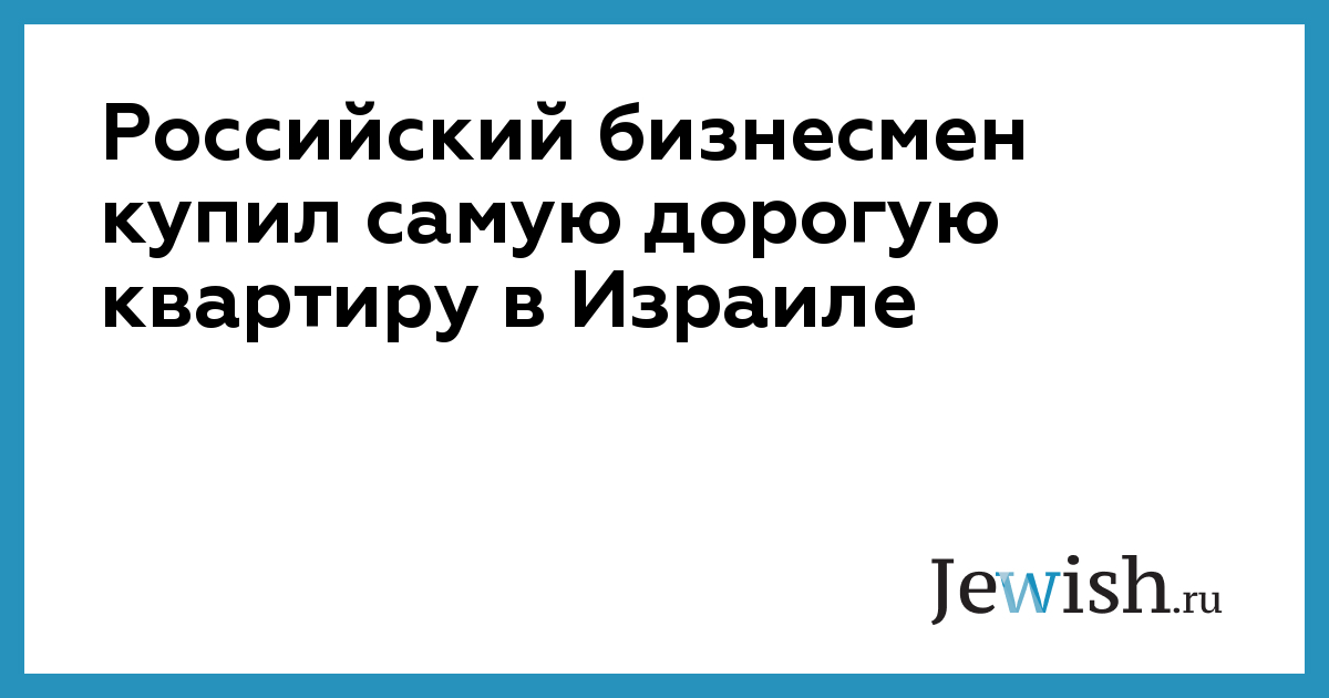 Российский бизнесмен купил самую дорогую квартиру в Израиле