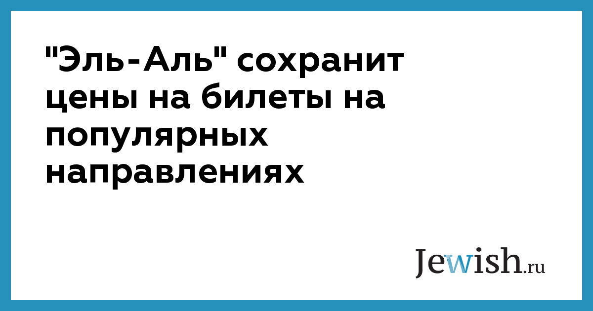 "Эль-Аль" сохранит цены на билеты на популярных направлениях