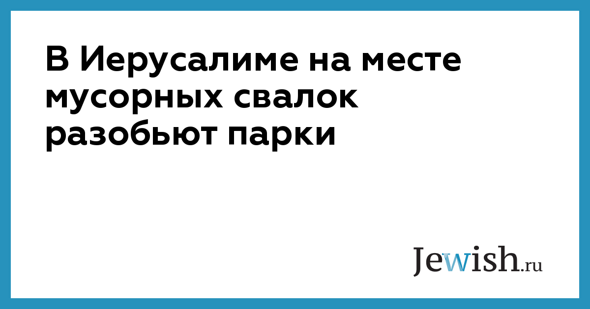 В Иерусалиме на месте мусорных свалок разобьют парки