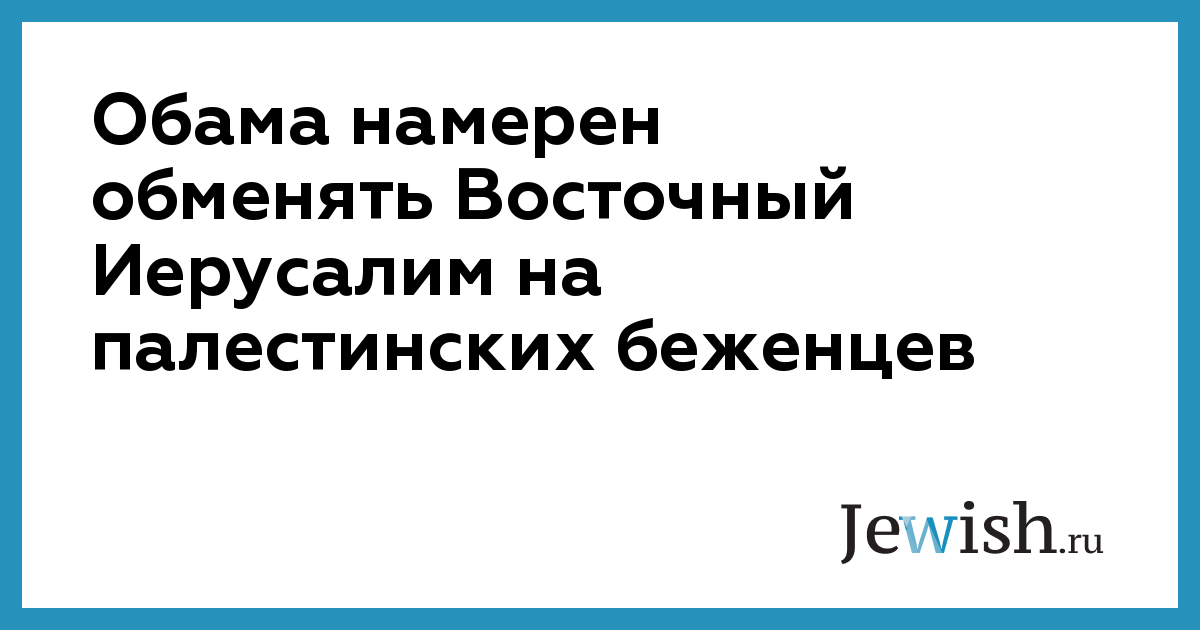Обама намерен обменять Восточный Иерусалим на палестинских беженцев